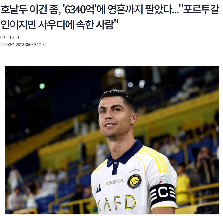 对于C罗的续约,韩国媒体的评价最为“苛刻”,Sports Chosun发布了标题为《C罗,这有点太过分了,他为了6340亿韩元出卖自己的灵魂……他是葡萄牙人,却说自己属于沙特的文章来嘲讽C罗。文章认为C罗为球队效力2年半的时间,拿到了高额的薪水却没有帮助球队取得荣誉上的突破,而且C罗本来打算离开球队,但是最终在对方开出了天价合同之后,再次改变了自己的想法,这样的行为被韩国媒体称为“出卖自己的灵魂”。